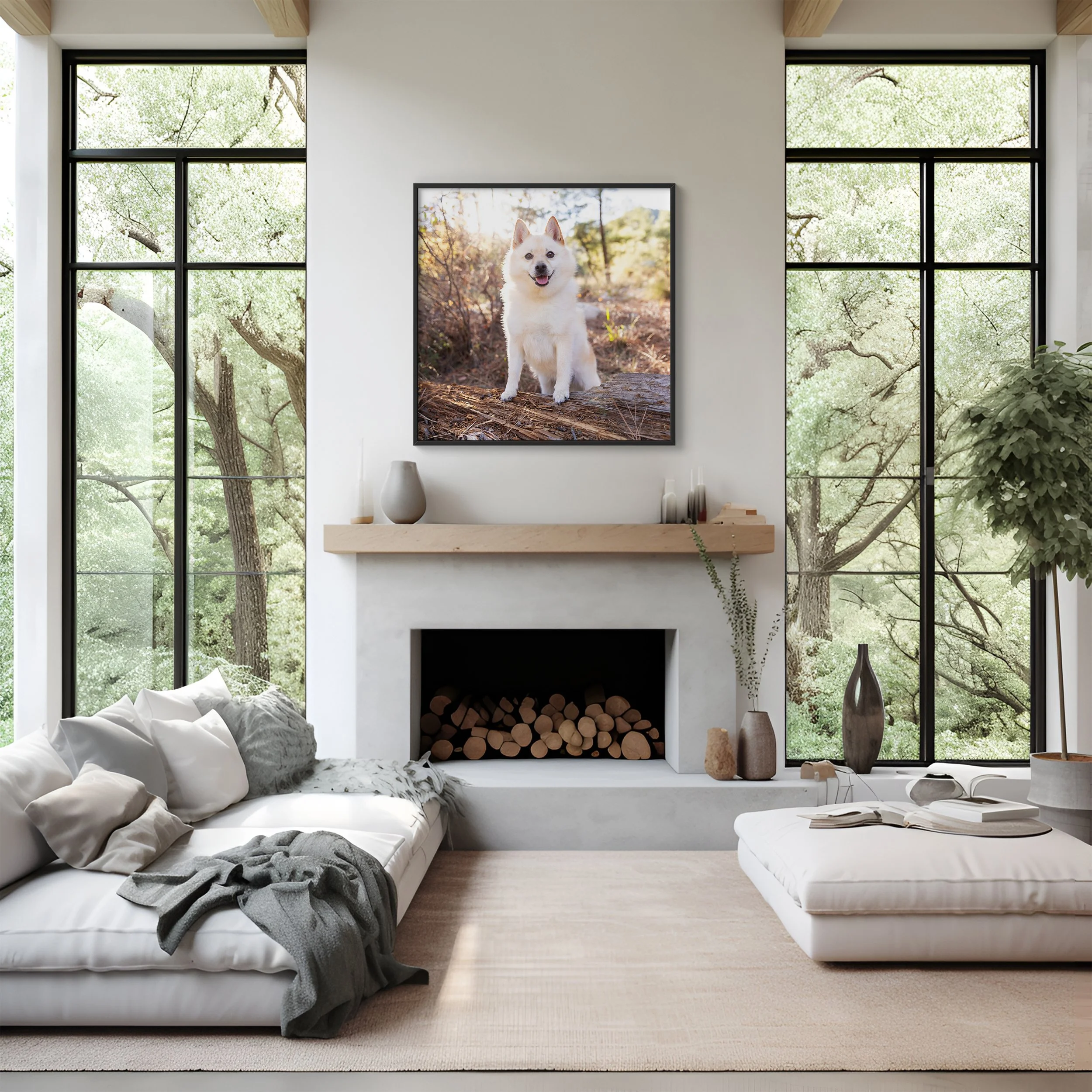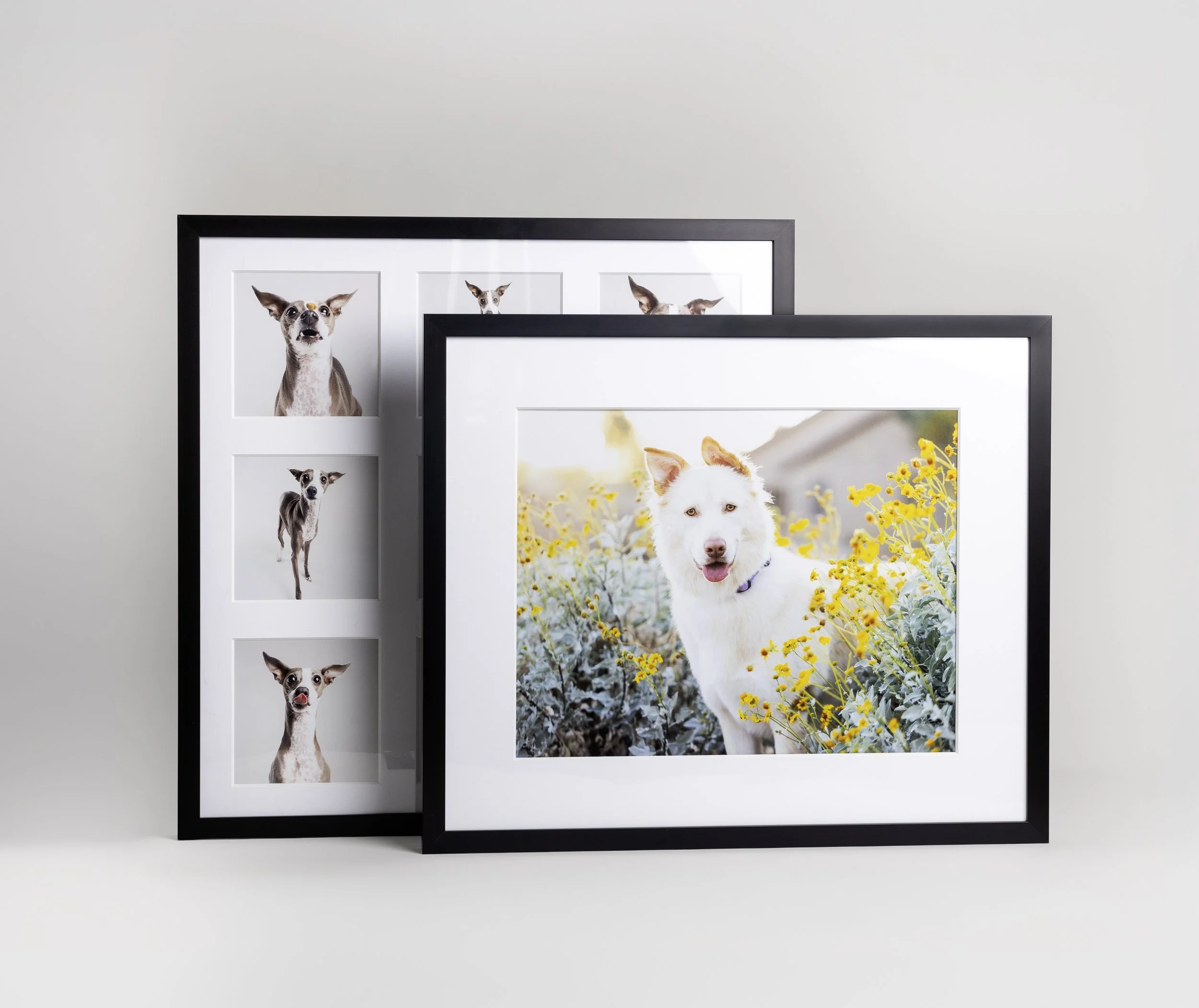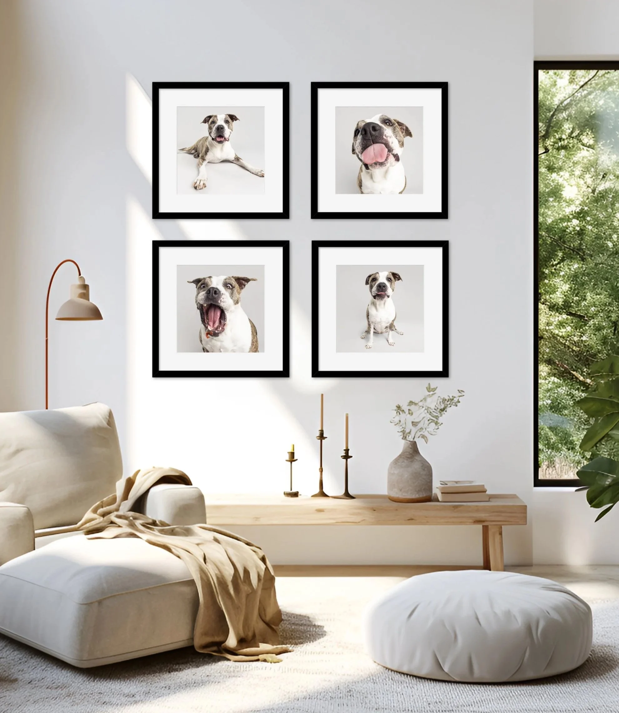 If deciding on wall art seems too daunting, I have your back there too! l use specialized software to mock up endless possibilities. The previews are shown on your wall, to scale, using your pet’s images. You’ll be confident you have the right sizes and image combinations.